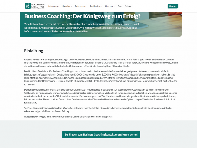 Unternehmen: Bollmann ExecutivesProjekte: Blog-Beiträge für WebsitesZeitraum: 2023